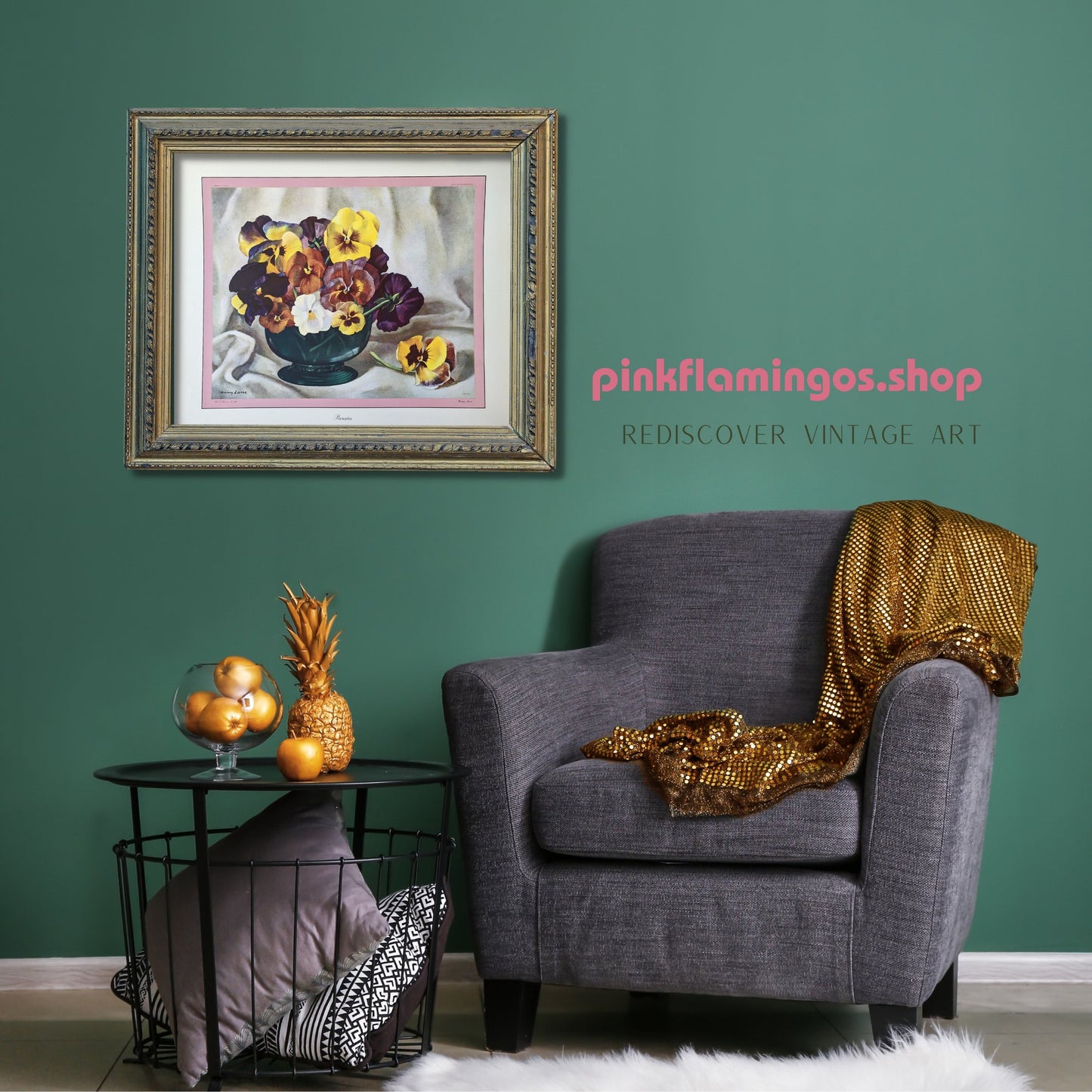 Originally printed by Catalda Fine Arts, Pansies is part of our Harry Lane floral series — style it on its own or pair it with Roses, Primroses, Cyclamen, or Magnolias for a timeless 1940s floral arrangement. Choose the medium version (16" × 19") for a classic look, or the large edition (22" × 26") with a soft pink border that frames your wall beautifully without extra effort.