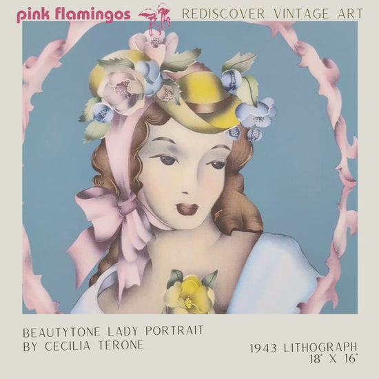 Bring graceful vintage charm to your walls with Lady Portrait in Blue by Cecilia Terone — part of the Beautytone Collection originally produced by Borin Art in the early 1940s.