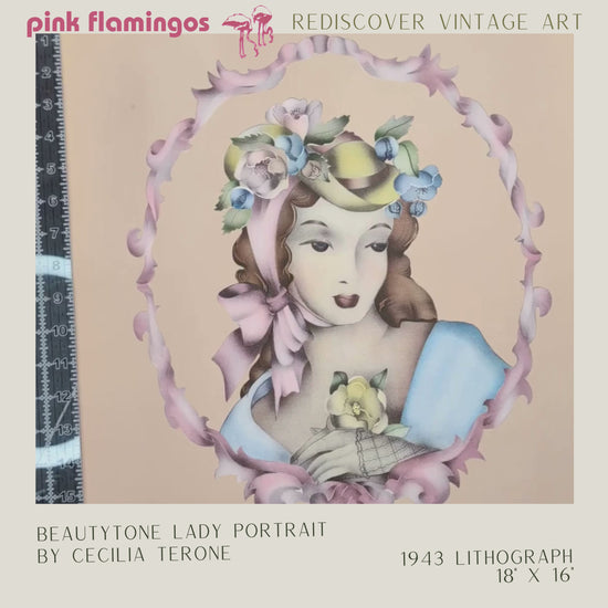 Add warm vintage charm to your space with Lady Portrait in Peach by Cecilia Terone — part of the Beautytone Collection originally produced by Borin Art in the early 1940s.