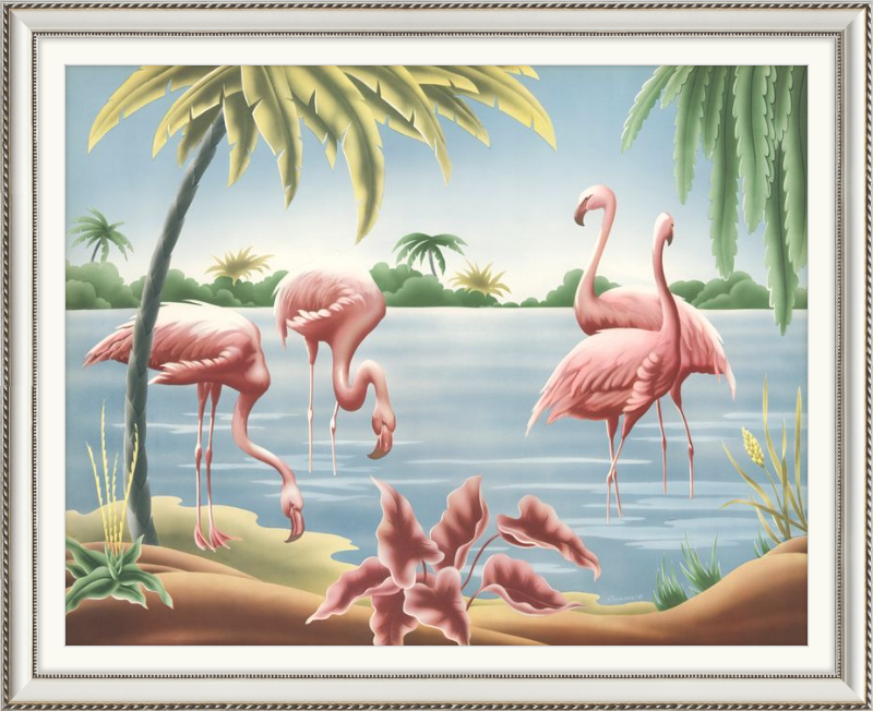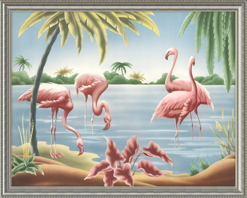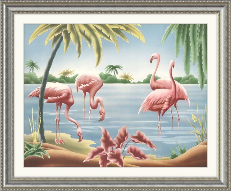 Also available as an authentic vintage original → Flamingos by A.T. Toran | 1940s Vintage Lithograph