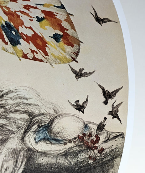 Originally illustrated in 1928, Parasol by Louis Icart captures a serene and sensual moment: a young woman in a flowing dress relaxes beneath a parasol, surrounded by gentle curves and delicate textures. This 1970s offset lithograph reprint faithfully preserves the elegance and lightness of Icart’s original Art Deco composition.