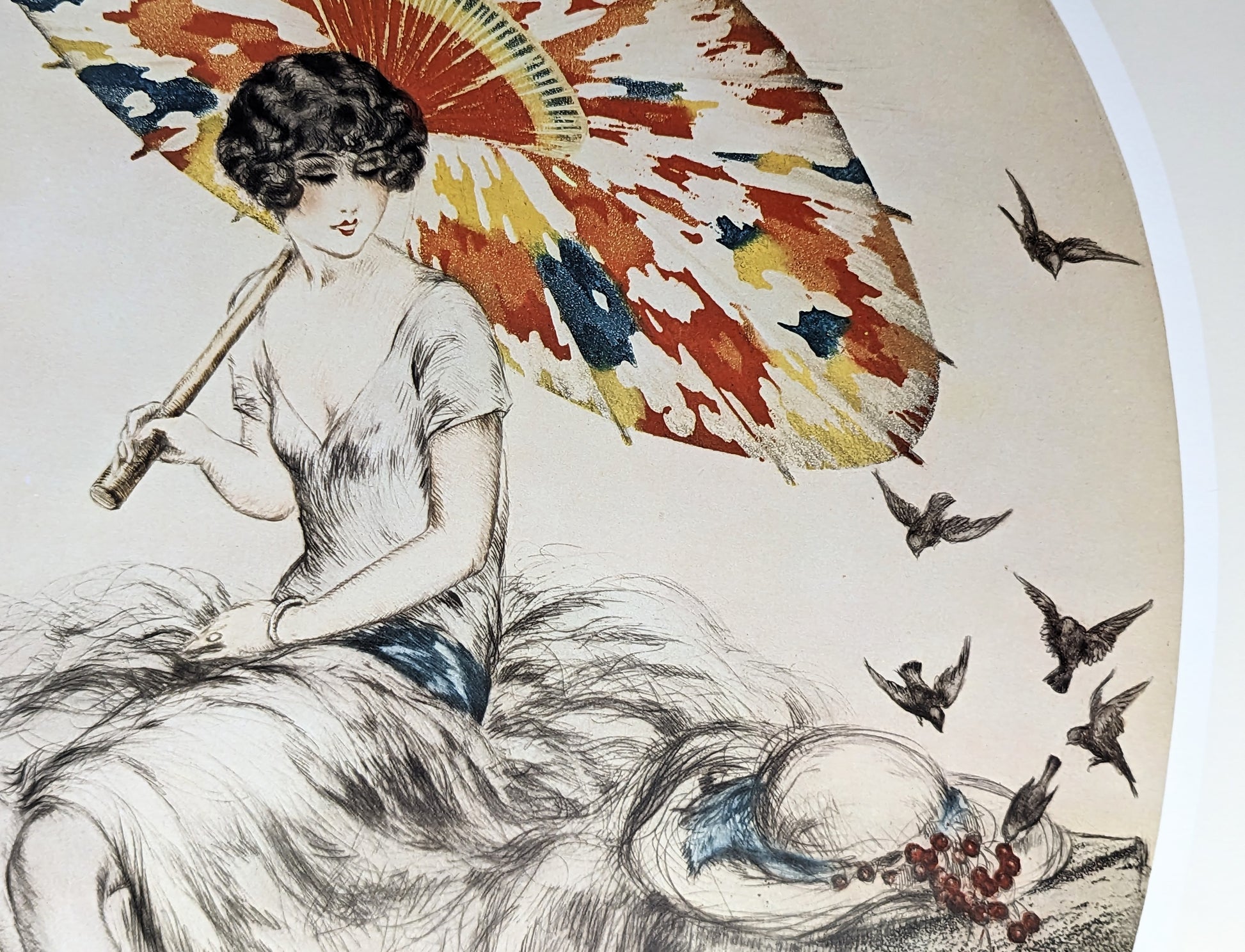 Parasol by Louis Icart | Vintage Art Deco Lithograph