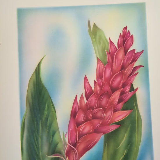Red Ginger | 1950s Hawaiian Floral Lithograph