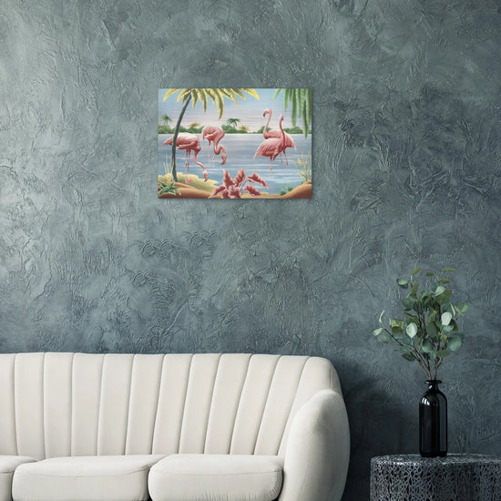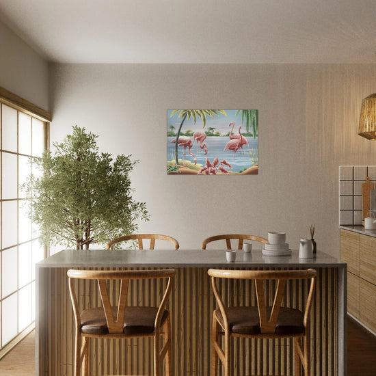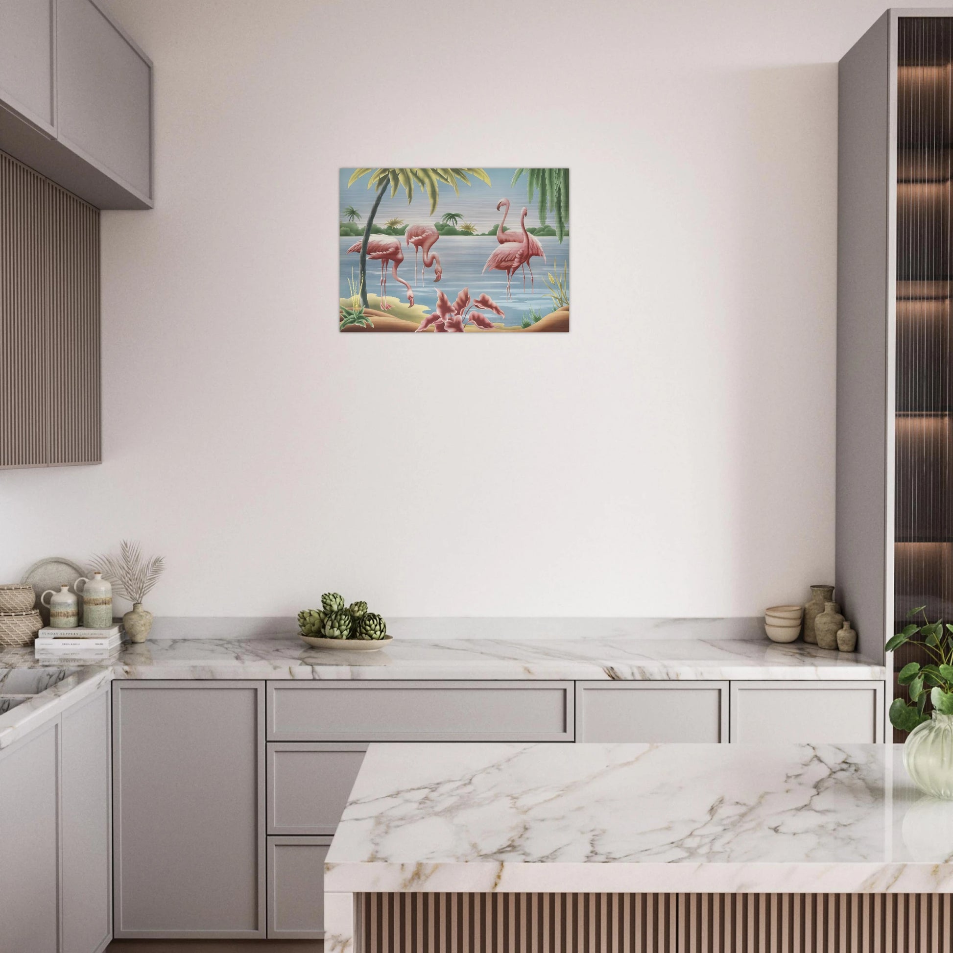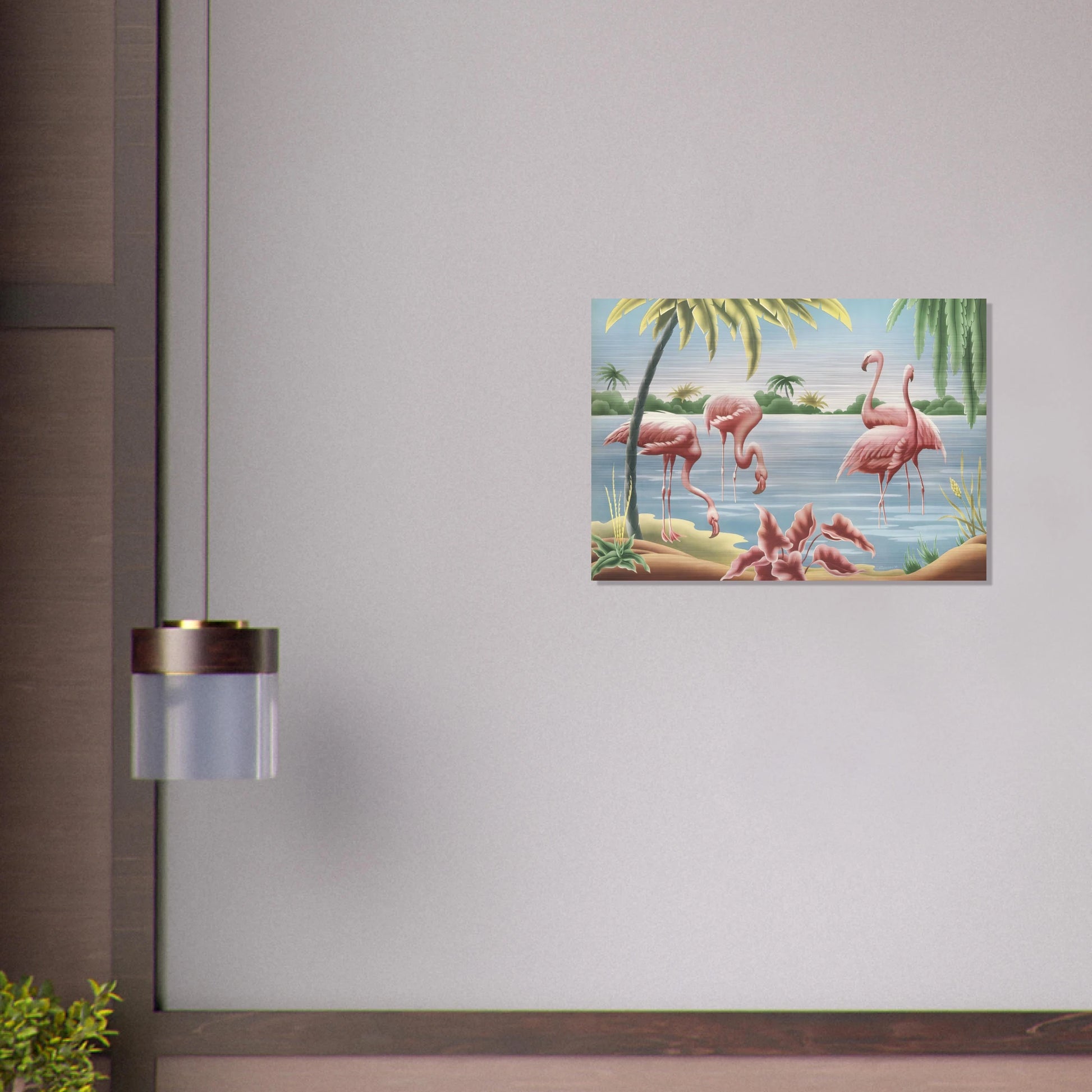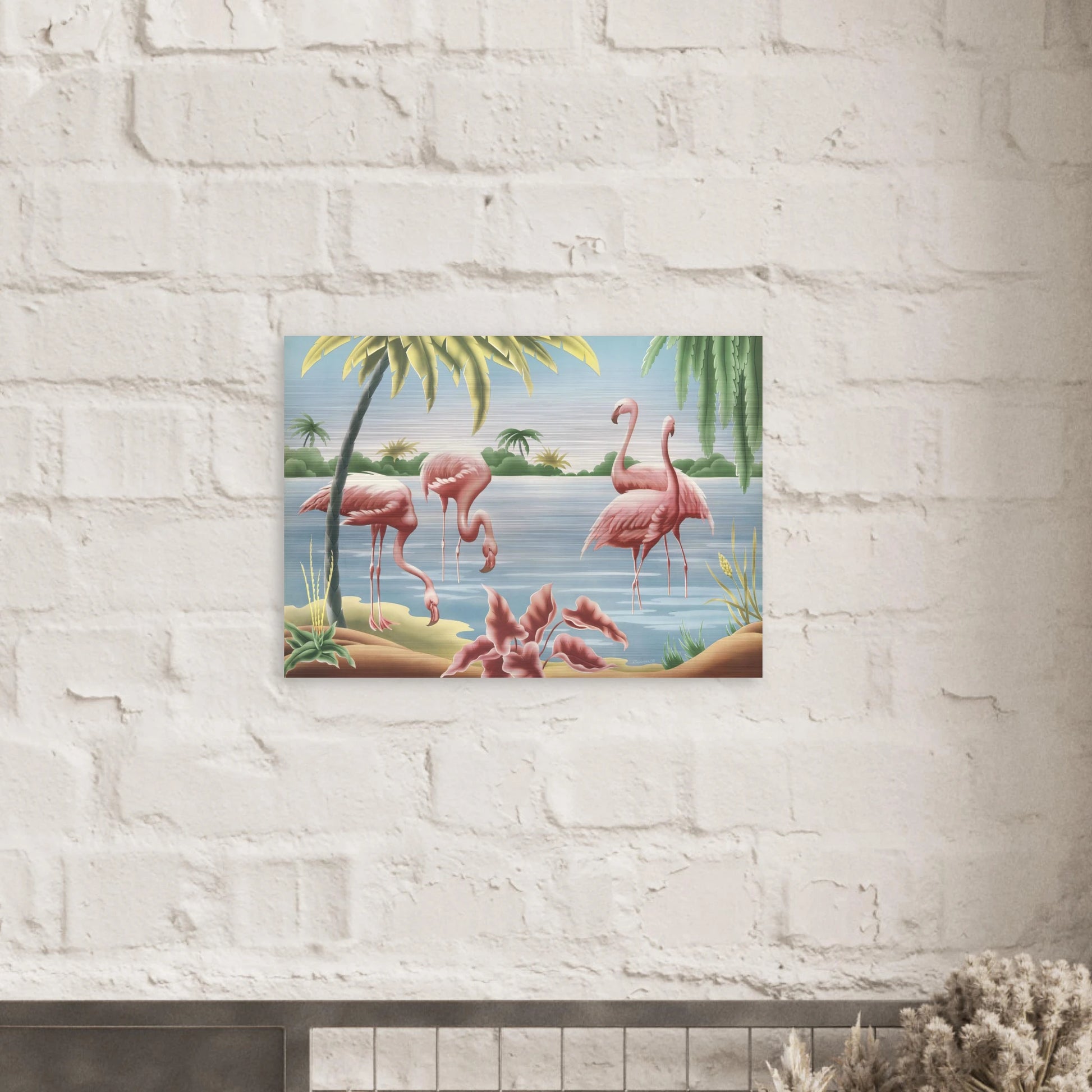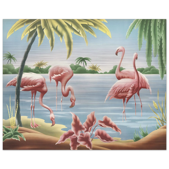 Bring museum-quality vintage art into your modern space with this brushed aluminum reproduction of A.T. Toran Turner's iconic flamingo lithograph. Originally created in the mid-20th century, this striking tropical bird print captures the elegance and vibrant detail that made Turner's work a staple of American decorative art—now reimagined on industrial metallic substrate.