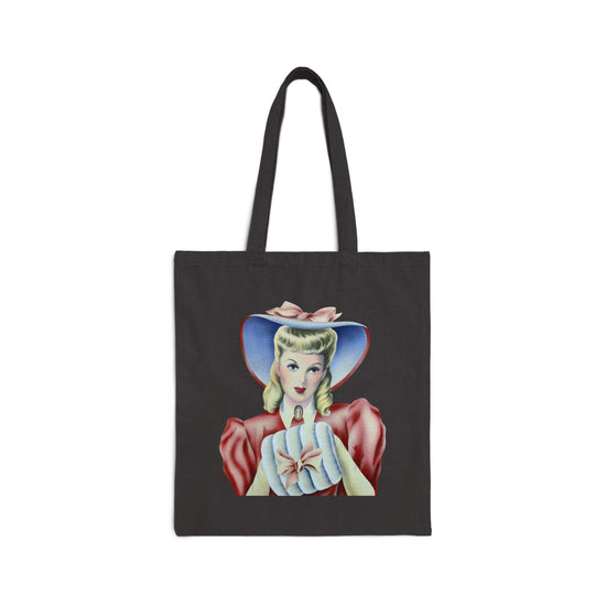 Carry vintage romance wherever you go! This sturdy cotton canvas tote features an exquisite 1940s airbrushed portrait of an elegant lady with a delicate cameo, from the Turner Wall Accessory archive.