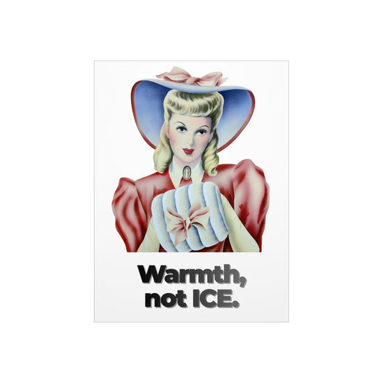 Why This Message Matters: "Warmth, Not ICE" calls for compassionate, humane immigration policies that prioritize human dignity over enforcement. The vintage portrait reminds us that behind every policy are real people, families, and stories deserving of warmth and welcome.